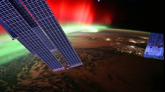 Сияния были настолько сильными, что проявилось не только зеленое свечение, но и красное, встречающееся достаточно редко. Космонавт пояснил, что в зеленый цвет окрашиваются атомы кислорода на высоте около 100 км, а в красный – на высоте 300−400 км. Для того чтобы заставить засиять частицы в высоких и разряженных слоях атмосферы, требуется огромное количество энергии. По словам Сергея Кудь-Сверчкова, красное свечение было заметно с МКС даже в тот момент, когда она пролетала очень далеко от полярных широт – над Ближним Востоком.