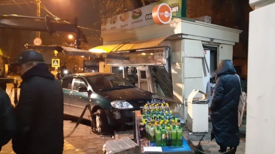 Житель Воронежа на Toyota Corolla врезался в киоск быстрого питания на пересечении улиц Куйбышева и Лермонтова в ночь на вторник, 10 декабря. Фотографии инцидента опубликовали горожане в социальных сетях.