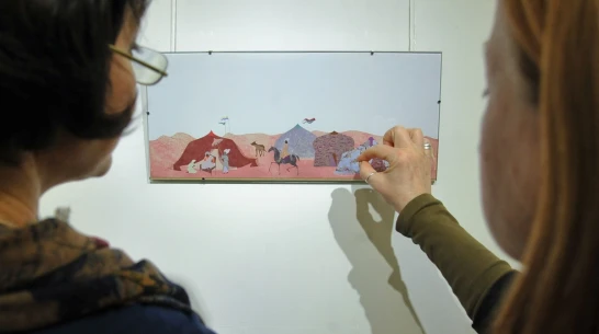 Выставка воронежской художницы Зои Камаевой открылась на третьем этаже основной экспозиции Воронежского областного художественного музея имени Крамского в среду, 26 апреля. В экспозицию «Тонкая, шелковая бумага» вошли иллюстрации к сказке Вильгельма Гауфа «Спасение Фатимы».