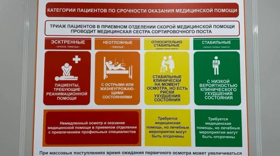 Ключевыми моментами в рамках модернизации приемного отделения №1 станут внедрение процедуры медицинской сортировки с применением информационной системы «Триаж» (оценка витальных показателей, фиксация жалоб и симптомов заболевания пациента, заполнение шкал), оформление напольной навигации и информационных указателей для пациентов. Для координации работы со службой скорой медицинской помощи планируется использование программы АСУ «СМП». Для удобства пациентов уже произведены капитальный ремонт и оснащение сортировочного пункта, смотровых «Желтой зоны», введены дополнительные посты сестринского наблюдения в зонах ургентности. Кроме того, в штат приемного отделения будут введены ставки врачей скорой медицинской помощи, которые пройдут стажировку на центральных клинических базах.