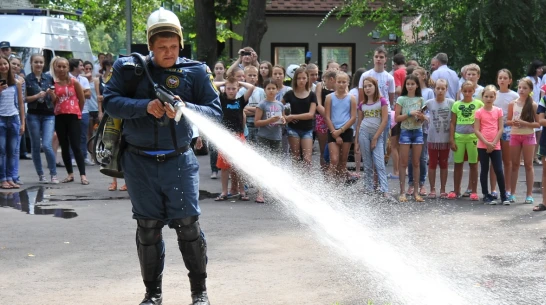 После проведения эвакуации и тушения пожара спасатели провели для воспитанников лагеря выставку пожарной техники и продемонстрировали возможности аварийно-спасательных формирований. На пляже специалисты рассказали детям, как вести себя во время отдыха у воды и как правильно оказывать помощь утопающим.