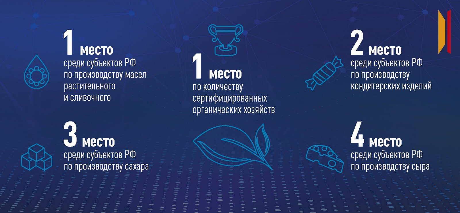 – Мы являемся безусловными лидерами, занимая первое место в стране (21 сертификат) по количеству сертифицированных органических производств, которые играют важную роль в сохранении окружающей среды и здоровья потребителей. Объемы агропромышленного экспорта предприятий региона свидетельствуют о нивелировании неправомерных санкционных ограничений. В 2024 году предприятия АПК региона экспортировали продукцию в 65 стран мира на сумму 55 млрд рублей, – рассказал глава региона.