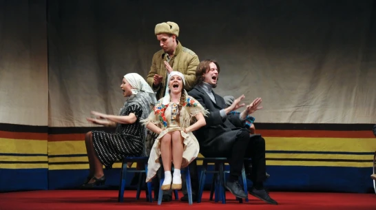 Новый спектакль «равных» с первых же минут погружает зрителя в советское прошлое: известные цитаты писателя, старые чайники, которые сейчас можно увидеть только в музеях и на даче, костюмы, мебель.