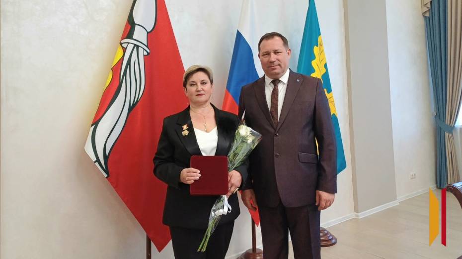 Глава Хохольского района Михаил Ельчанинов вручил почетный знак Воронежской области «За добросовестный труд и профессионализм» заместителю администрации муниципалитета Лилии Ярмоновой. На награждении присутствовала корреспондент РИА «Воронеж».
