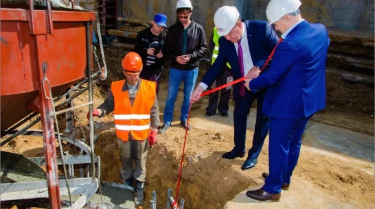 Торжественная закладка капсулы с золотой монетой в основание пятой позиции жилого комплекса «ВЫСОТА» на улице Краснознаменной, 57 Воронежа состоялась во вторник, 26 апреля.