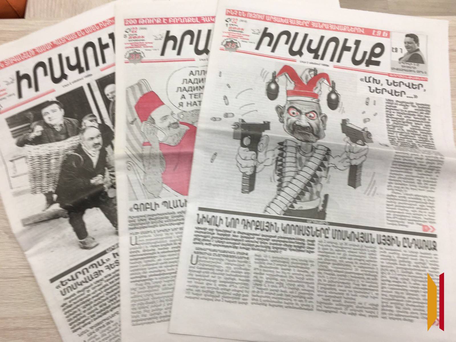 Интересны и номера газеты «Иравунк». Конечно, трудно говорить что-то о текстах на армянском языке, но практически все выпуски на первой полосе сопровождаются карикатурами на нынешнего премьер-министра Армении. Патриотической общественности республики не нравятся его попытки заигрывания с Западом. Здесь убеждены, что в то время, когда в Европе только обещают республике златые горы, с Россией уже существуют прочные экономические и культурные связи, проверенные веками.