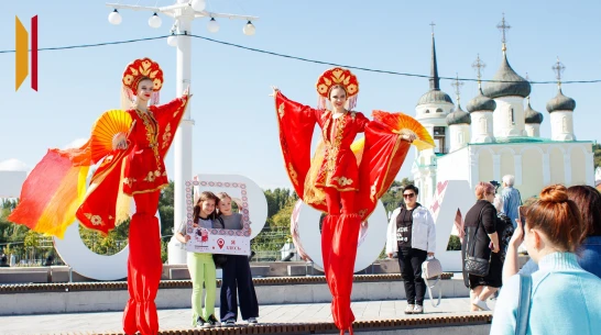 Экспозиция: воронежцев на Адмиралтейской площади встречали барышни в народных костюмах. Каждая представляла район Воронежской области. На платьях – много деталей, которые олицетворяют свой родной край. Борисоглебская красавица понравилась корреспонденту РИА «Воронеж» больше всего.
