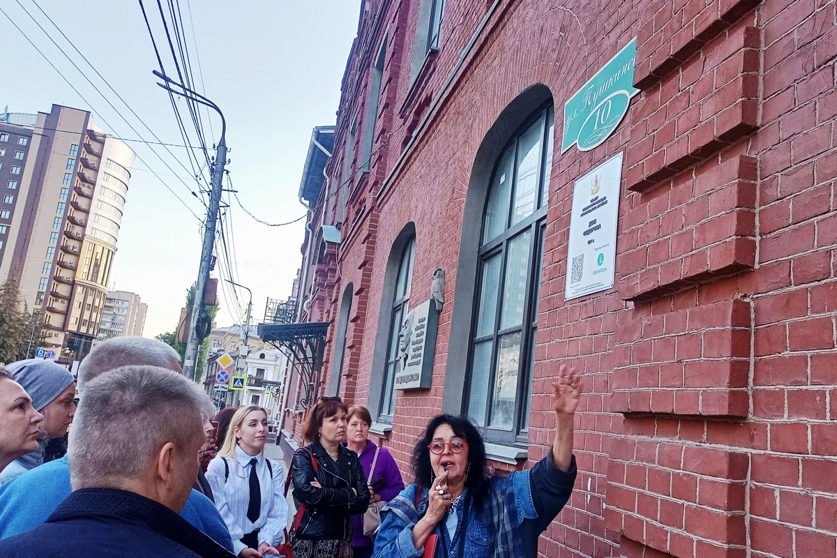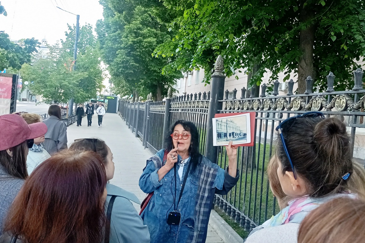 – Товарищи, посмотрите, какое интересное здание, и найдите различия между прошлым и настоящим, – указывает гид на дом купца Просвиркина.