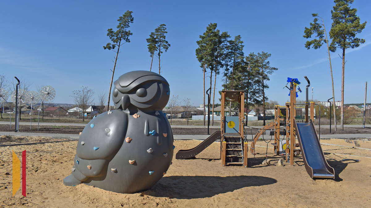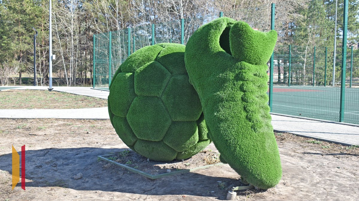 Также в новом сквере установили детское игровое оборудование и скалодром «Сова», сделали отдельную площадку для воркаута. Изюминкой стали два арт-объекта – фигура-топиарий в виде бутсы и футбольного мяча, а также световая инсталляция в виде пяти одуванчиков.