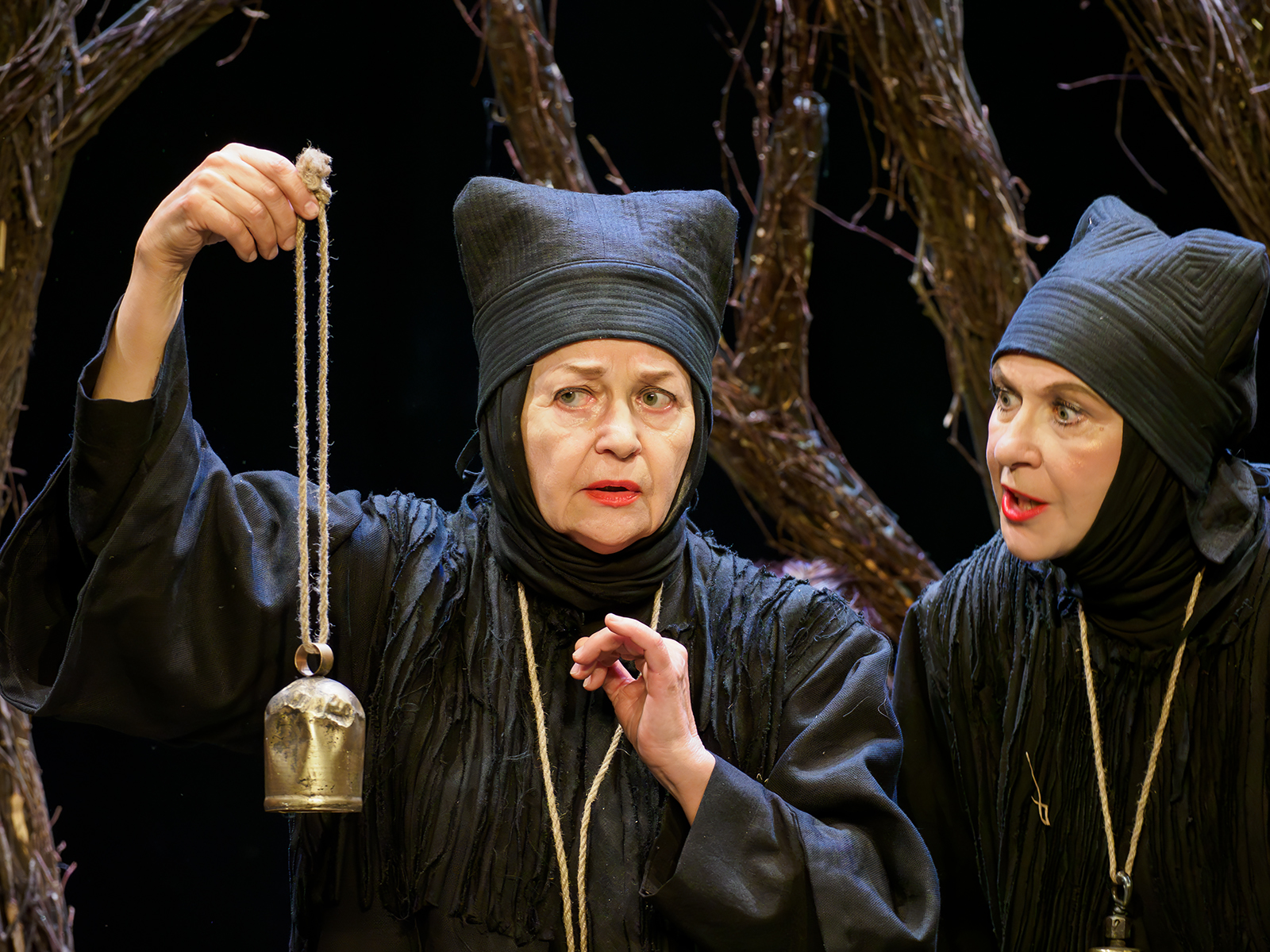 – Мойры плетут нить судьбы, отмеряют время и символически перерезают ленточку, тем самым оканчивая жизненный путь. В спектакле нас зовут Отела, Летела и Ветела. Если перевести это на язык природы, то это Осень, Лето и Весна. У каждой из них – свой характер. Они прописывались режиссером, который подсказывал, где те петелька и крючочек, которыми нам нужно скрепиться друг с другом. Конечно, повлияли на образы и наши собственные характеры, – отметила одна из исполнительниц роли мойры Елена Поляшенко.