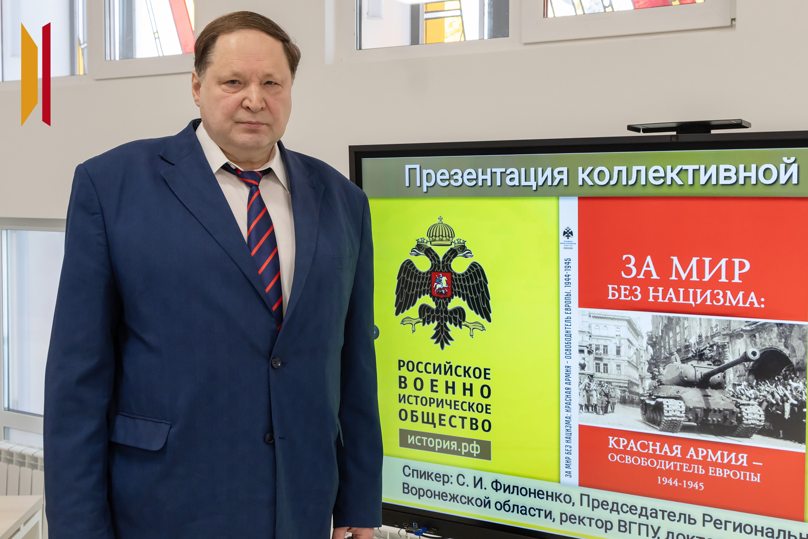В Воронеже в среду, 2 апреля, на базе Центра военно-патриотического воспитания «Музей-диорама» состоялась презентация книги «За мир без нацизма: Красная Армия – освободитель Европы. 1944−1945 гг.» (16+), издание научного труда приурочено к 80-летию Великой Победы. Монографию презентовал ее редактор, ректор Воронежского государственного педагогического университета, историк, профессор Сергей Филоненко. Мероприятие посетили корреспонденты РИА «Воронеж».