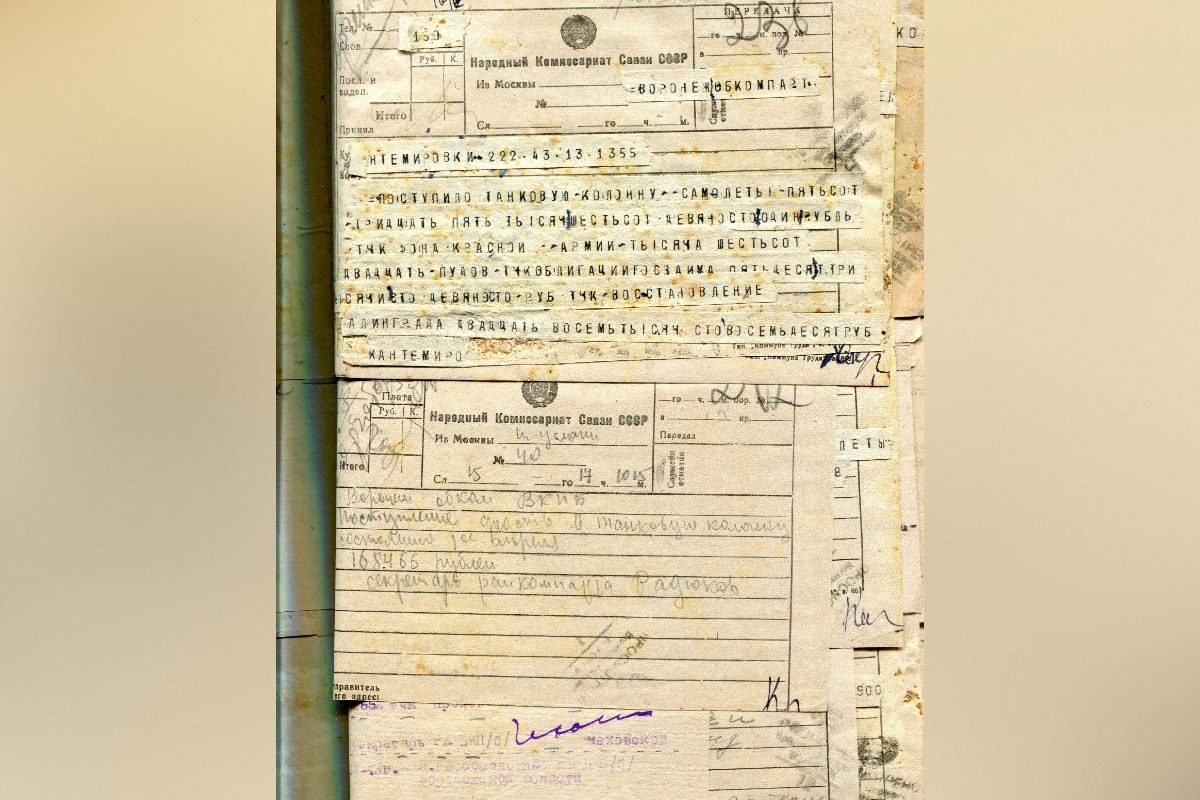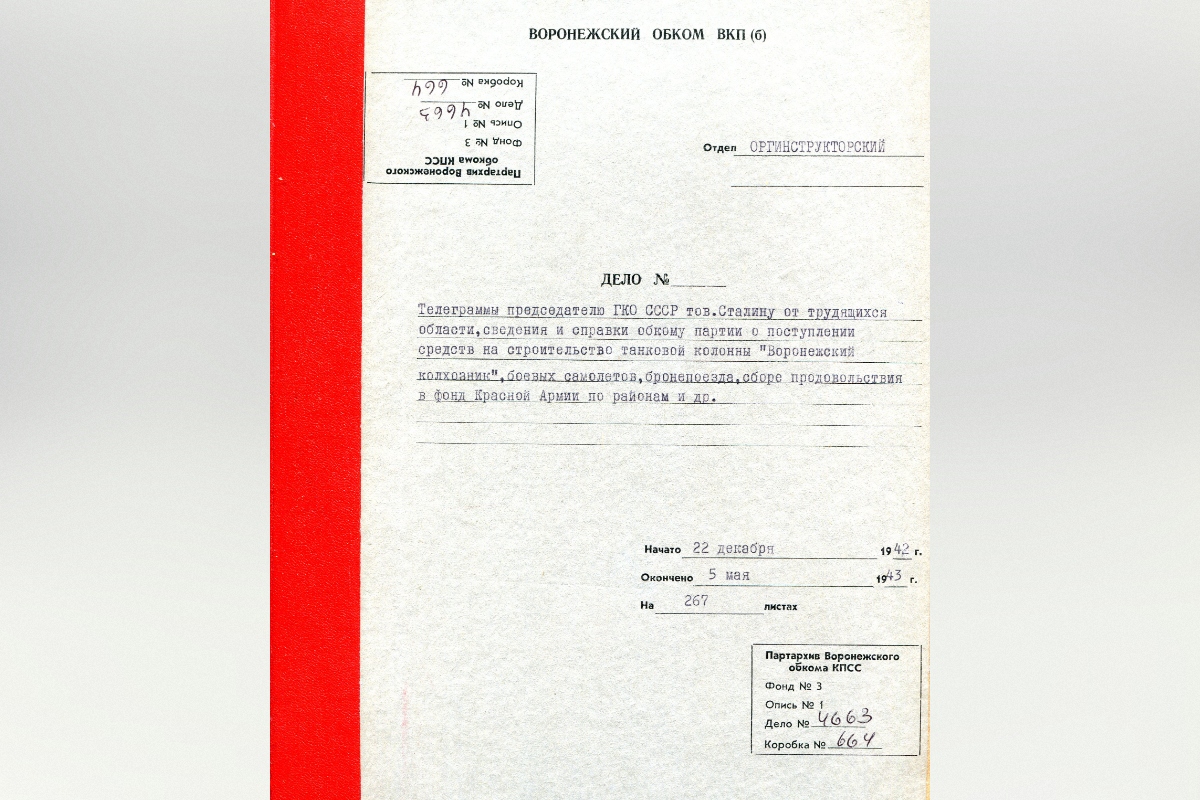 Вообще, дело № 4663, хранящееся в Государственном архиве общественно-политической истории Воронежской области, уникально. В нем не только списки районов, отчитавшихся по сбору средств, но и благодарности, и телеграммы, подшитые пластами по 30−50 шт.
