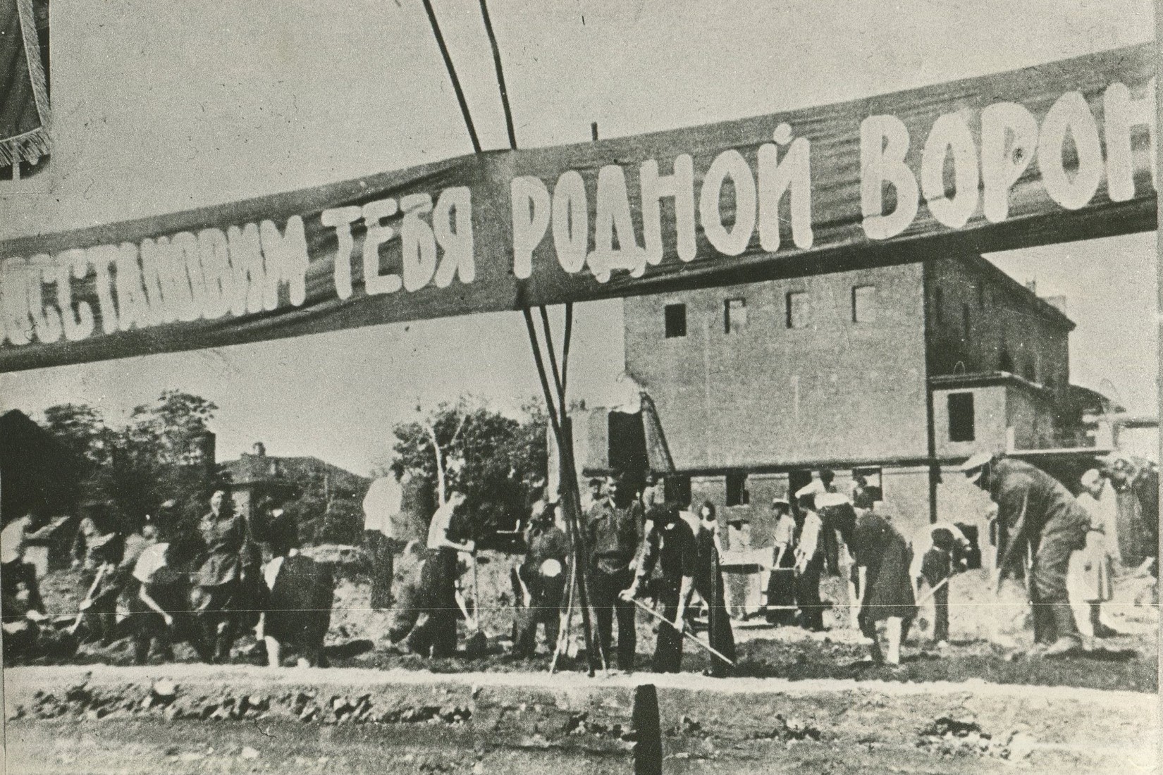 Сломали те, кто защищал город, отбивая бесчисленные атаки фашистов под нескончаемыми бомбежками летом 1942 года. Сломали те, кто зимой 1943-го бежал с автоматом в руках по тонкому льду освобождать город. Сломали те, кто в тылу с лопатой и граблями, с кувалдой и гаечным ключом не разгибал спину, работая на благо победы.