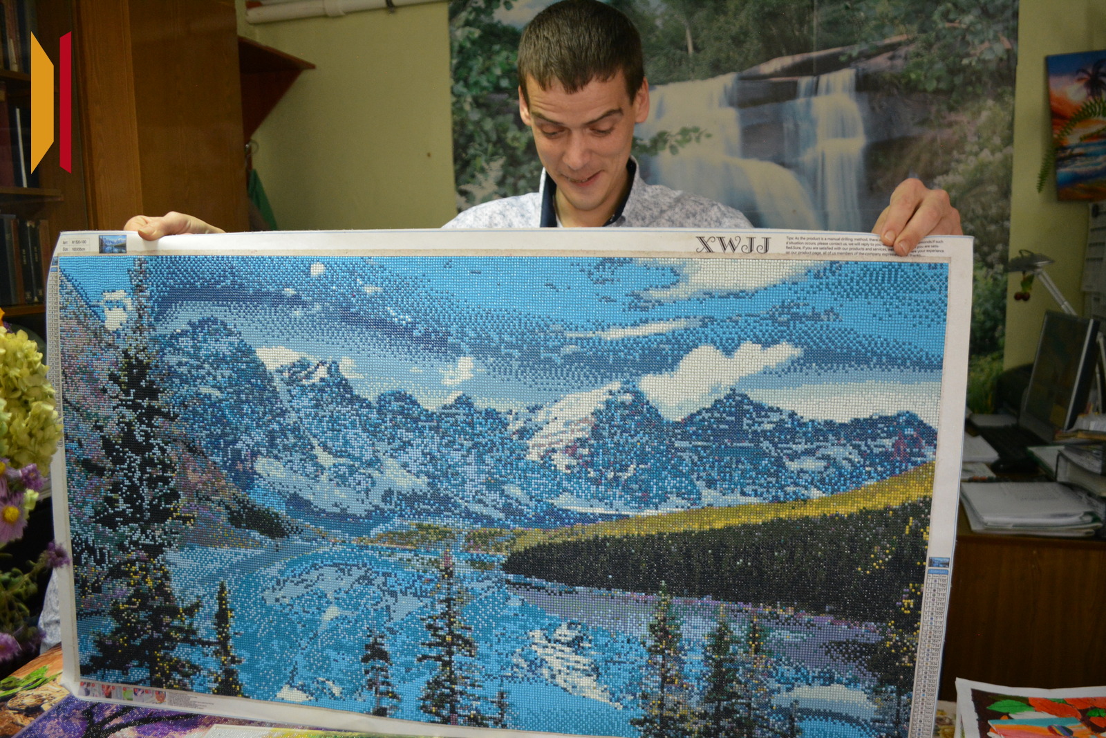 — А еще я вышиваю крестиком и бисером, это у меня тоже получается, — признался Александр Подин. — С алмазной мозаикой познакомился три года назад. Начинал с маленьких картин, но они слишком быстро делаются, и мне предложили более сложные выкладки. Определенной тематики я не придерживаюсь, мне нравится сам процесс — завораживающий и успокаивающий. Перед работой я всегда внимательно изучаю цветовую гамму, начинаю выкладку с верхнего угла и иду вниз.