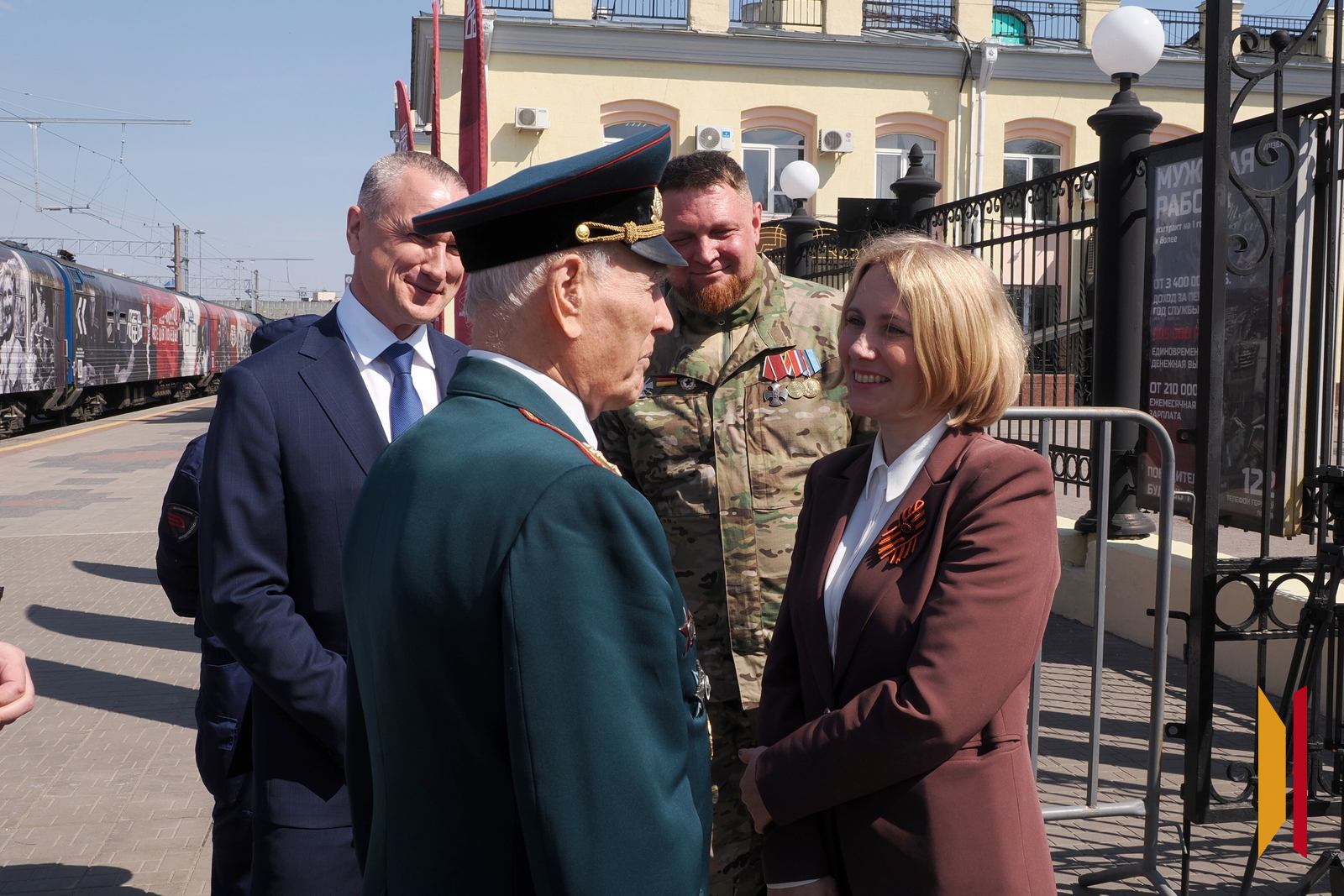 В четверг, 17 апреля, в Воронеж прибыл уникальный передвижной музей «Поезд Победы» (12+). Его вагоны-залы наполнены экспозициями на разные темы Великой Отечественной войны. В первый день работы музея экскурсию посетили заместитель председателя правительства Воронежской области Алексей Гиричев, министр внутренней политики региона Елена Дерганова, руководитель управления молодежной политики Сергей Афанасьев, 100-летний ветеран ВОВ Николай Борисов, а также участник спецоперации директор Центра тактической подготовки Денис Рубащенко. «Поезд Победы» продолжит работу в столице Черноземья в пятницу, 18 апреля.