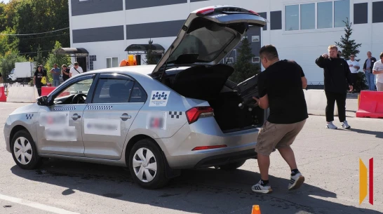 Но, конечно, главной, показательной частью соревнования стало преодоление полосы препятствий. Таксистам предстояло за шесть минут выполнить несколько элементов. Среди них – заезд в гараж, параллельная парковка и «змейка» задним ходом, а также кольцевое движение как на передней, так и на задней передачах. Новшеством практической части стало задание с погрузкой багажа – так жюри конкурса проверяло бережность обращения водителя с вещами пассажира. Все указанные задания таксист должен был выполнить с пятью стаканами воды, установленными на крышу автомобиля. В каждом из них заливалось по 300 мл воды. За упавший сосуд конкурсанту начислялось штрафное время.