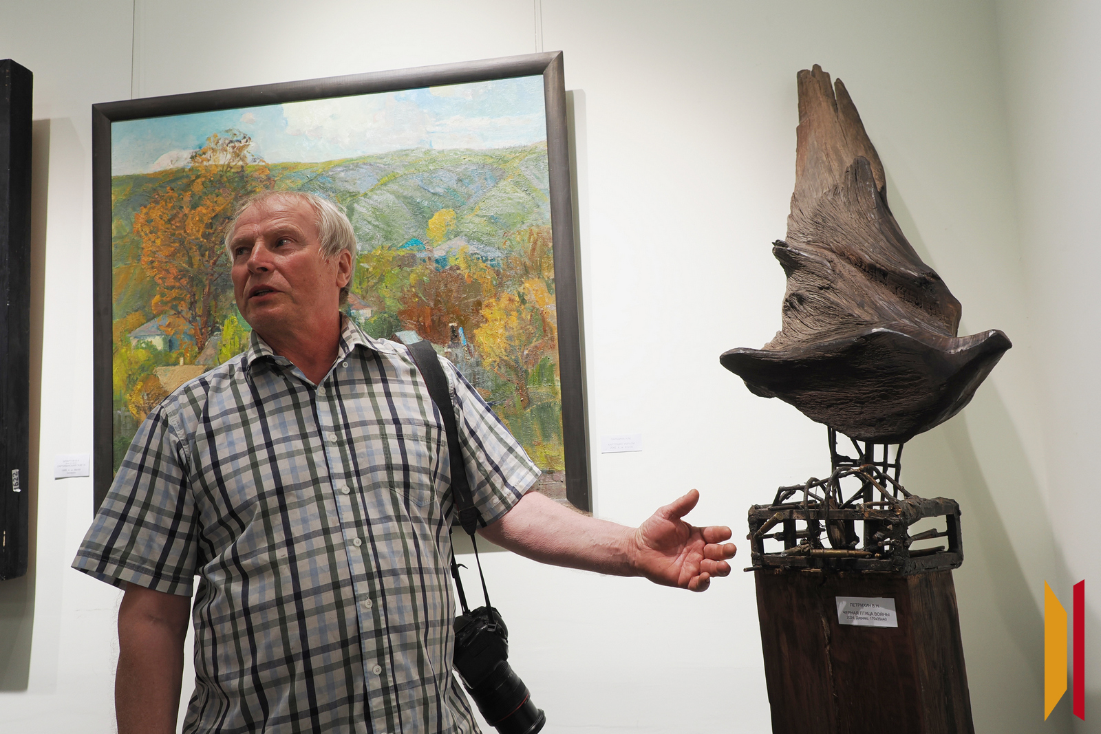 Он рассказал, что скульптура олицетворяет черную птицу, которая вырвалась из клетки, после чего начались темные военные времена. Мужчина долгое время работал над своим творением. Работы, представленные его коллегами, Владимир Петрихин называет очень достойными и трогательными.