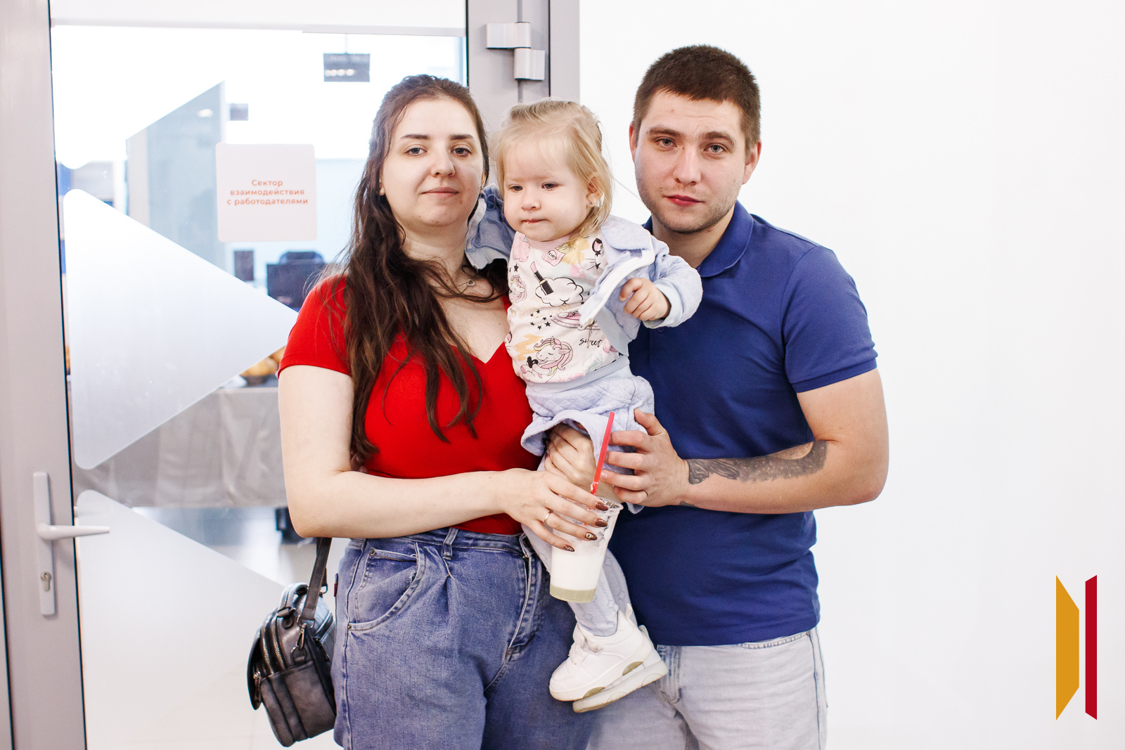Основную часть соискателей составляли участники спецоперации. Одним из тех, кто находится в поиске заработка, был Роман Лысенко. В июле 2024 года он по собственному желанию подписал контракт и отправился в зону боевых действий. На луганском направлении мужчина получил серьезные ранения – разрыв легкого, множество осколков в теле, в том числе два у сердца, две контузии. В феврале этого года Романа отправили домой, к семье. На ярмарку он пришел вместе с женой Анастасией и дочерью Полиной.