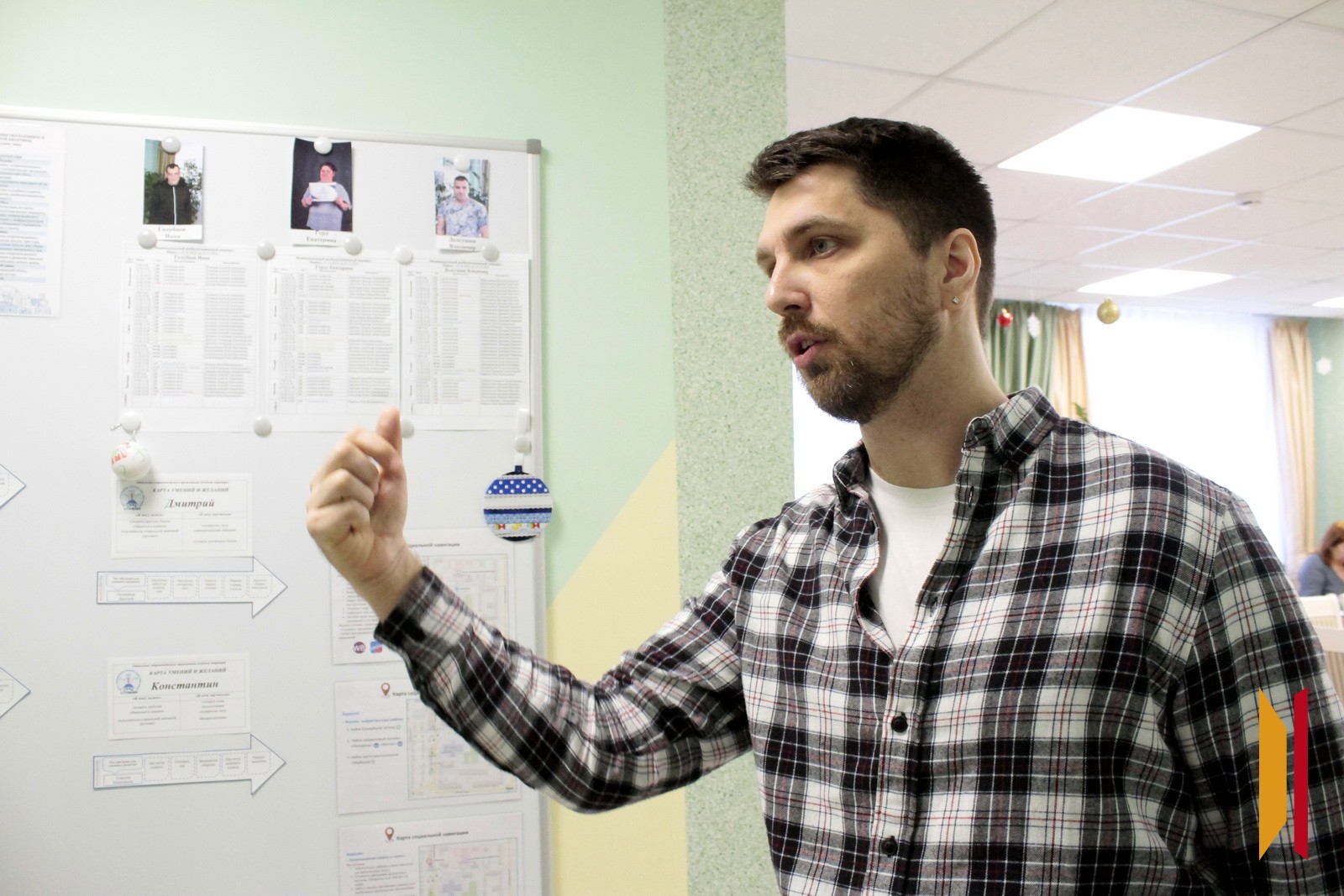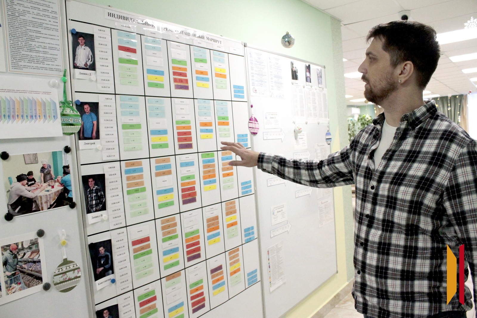 – Перед заездом мы составляем индивидуальный реабилитационный план. Его упрощенный вариант представлен на информационной доске в цветном варианте, потому что обычно подопечные не умеют читать и писать. Наша цель – восстановить бытовые навыки, чтобы человек научился жить самостоятельно, в идеале – один. При этом мы не учим их всему подряд. На первых занятиях они составляют карту умений и желаний, где прописывают то, чему хотят научиться, – объяснил Владимир Логунов.