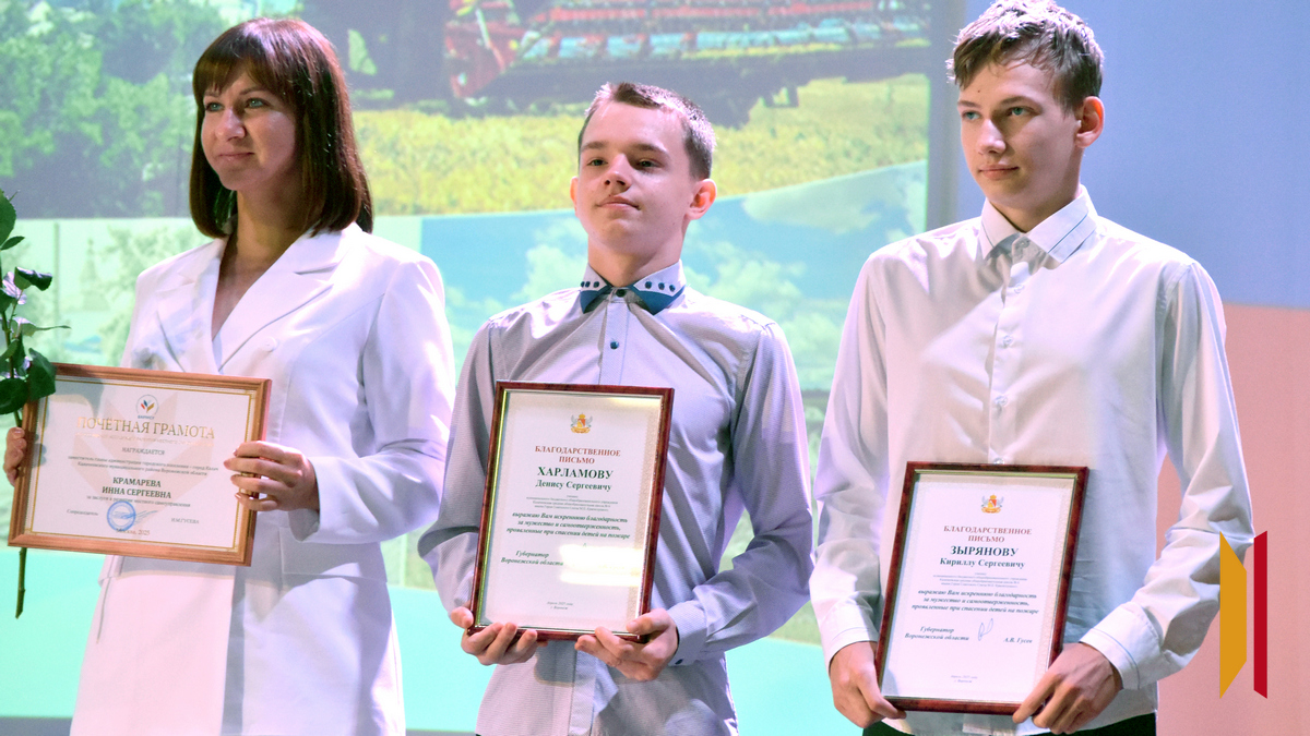 За героический поступок Денису Харламову и Кириллу Зырянову вручили благодарственные письма от губернатора Александра Гусева, знаки «Благодарность от земли Калачеевской» – от главы администрации района Николая Котолевского и медали «За высокую гражданственность» – от руководителя регионального управления Следственного комитета Михаила Селюкова.