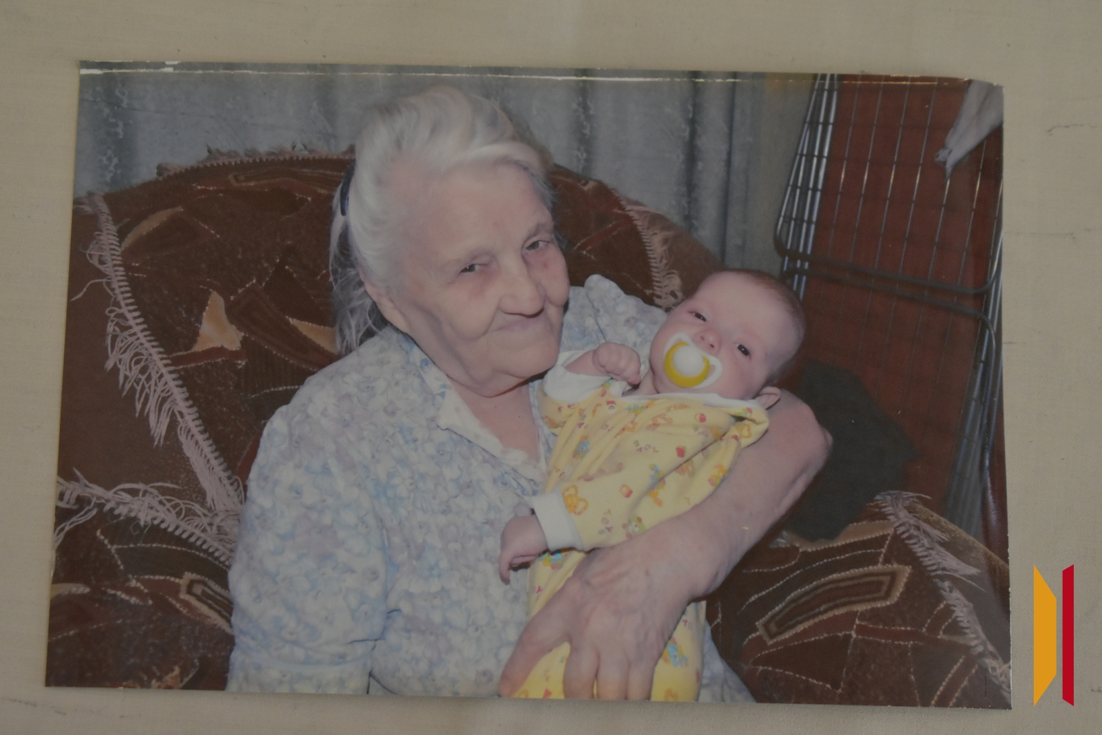 Внучка Ольга показывает фотографию — на снимке Пелагея Григорьевна с праправнучкой Алиной
