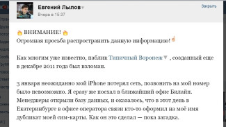 Неизвестные взломали популярное в регионе интернет-сообщество «Типичный Воронеж» во время новогодних праздников-2015. Злоумышленники в Екатеринбурге выпустили дубликат sim-карты, к которой был «привязан» аккаунт «ВКонтакте» создателя паблика Евгения Лылова. После этого взломщики переоформили администраторские права в группе с 162 тыс. подписчиков на себя. В деле разбирается воронежская полиция. Все материалы об украденной группе – в этом сюжете.